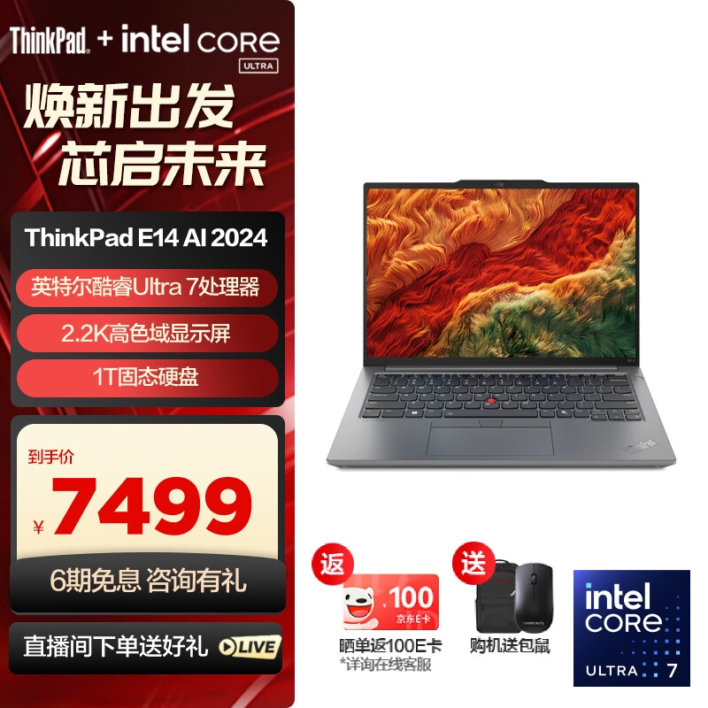ThinkPad 联想 E14 AI 2024全新英特尔酷睿Ultra处理器可选 商务办公便携笔记本电脑 14英寸轻薄本 Ultra 7-155H 32G 1TB商务黑价格:7999.00元!