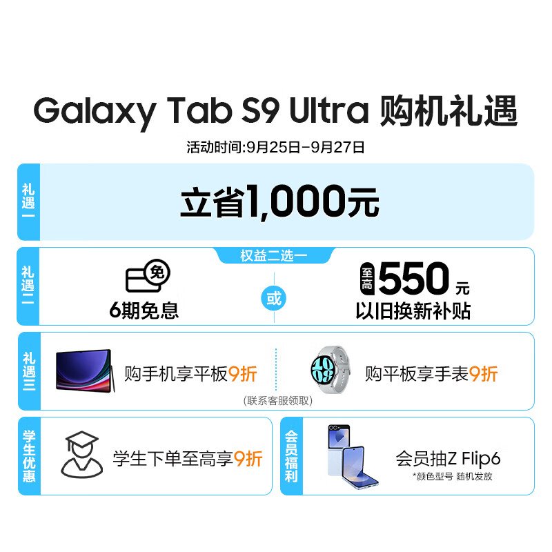三星 Samsung S9 Ultra 14.6英寸平板电脑/AI智享学习办公/骁龙8Gen2/含S Pen 12G+512GB 云影灰5G价格:10099.00元!