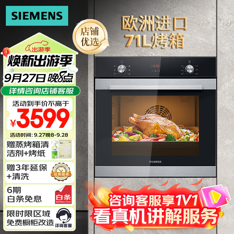 西门子(SIEMENS)欧洲原装进口嵌入式烤箱 智能家用大容量 5种专业模式烘烤 蒸烤箱系列产品HB313ABS0W高59.5CM价格:3598.00元!