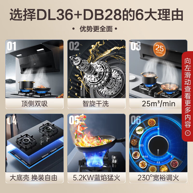 苏泊尔(SUPOR)抽油烟机 顶侧双吸1000帕变频吸油烟机灶具 25立方 5.2KW烟灶套装 DL36+DB28液化气价格:2499.00元!