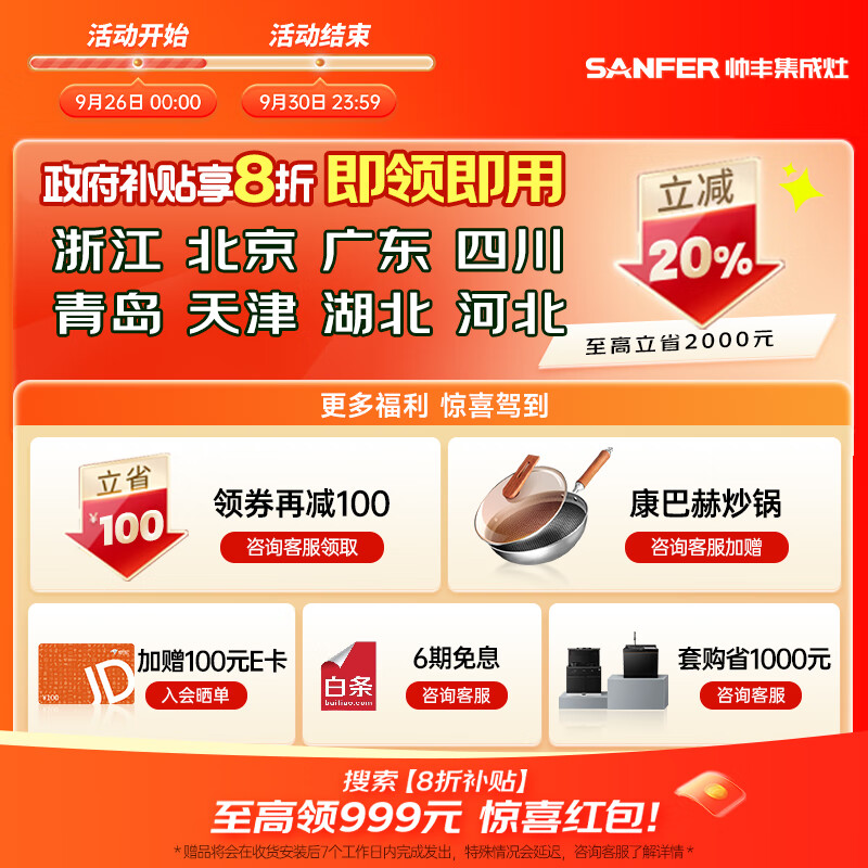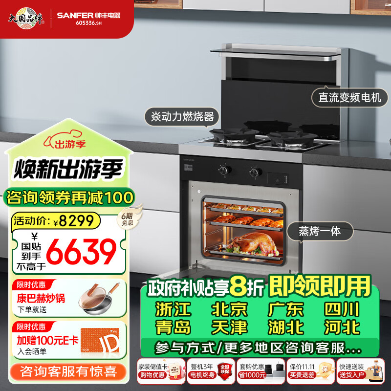 帅丰(SANFER)集成灶 小户型蒸箱烤箱油烟机灶 蒸烤一体款变频集成灶 D8-7B 700mm小尺寸集成灶 天然气价格:8299.00元!