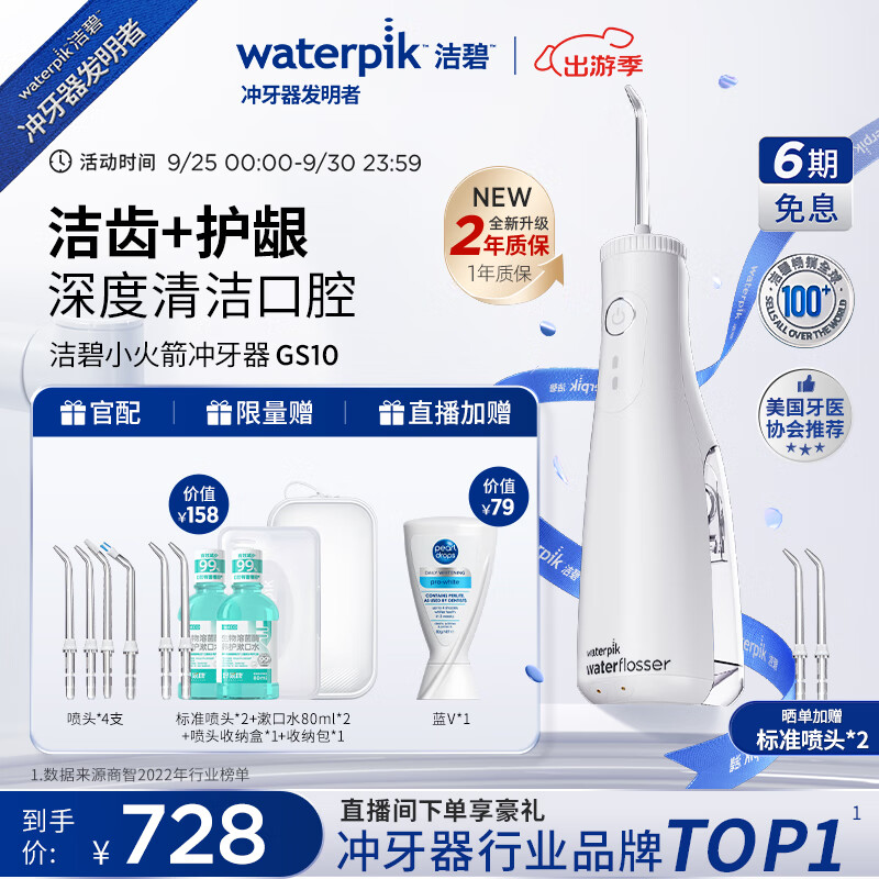 洁碧(Waterpik)冲牙器便携式电动洗牙器水牙线家用立式预防牙结石正畸适用全身水洗【小火箭】礼物价格:808.00元!