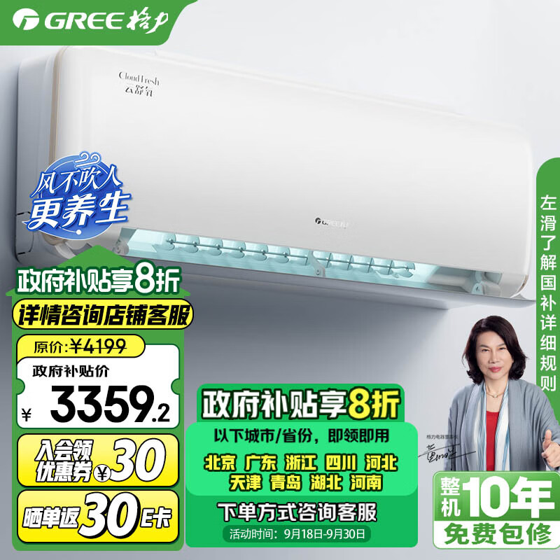 格力(GREE)新风空调 1.5匹 云舒氧1级能效 壁挂式卧室挂机 格力空调KFR-35GW/NhHf1BAj以旧换新补贴价格:4199.00元!