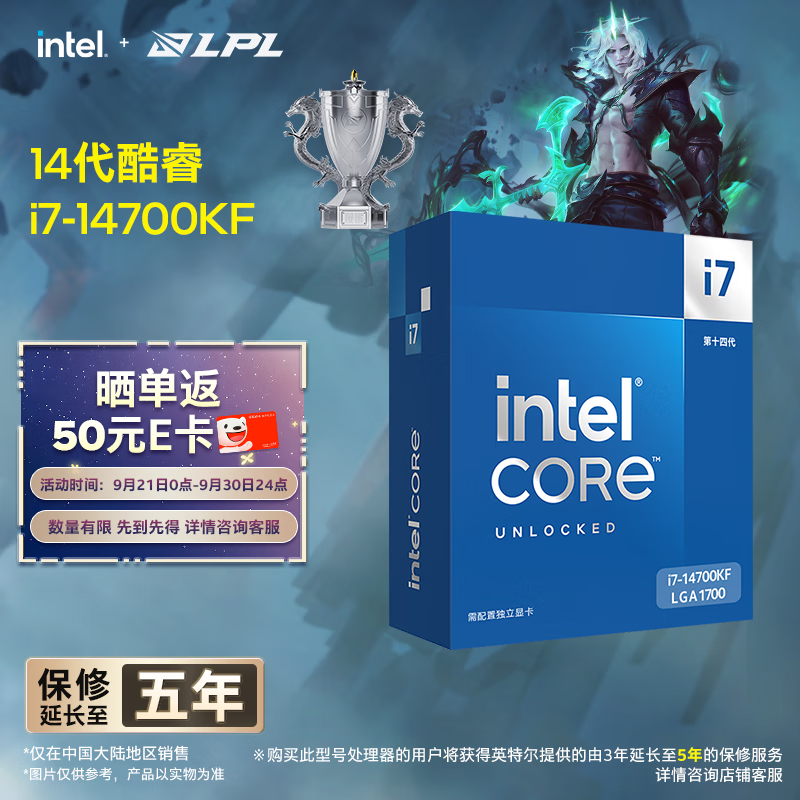 英特尔(Intel) i7-14700KF 酷睿14代 处理器 20核28线程 睿频至高可达5.6Ghz 五年质保 台式机盒装CPU价格:2898.00元!