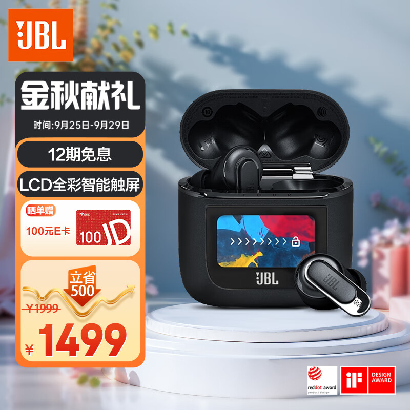 JBL TOUR PRO2无线蓝牙降噪耳机 LCD智能屏入耳式运动电竞游戏音乐耳机 男士礼物 钢琴黑价格:1899.00元!