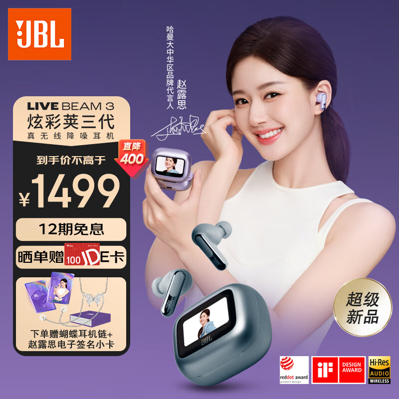 JBLLIVE BEAM 3 炫彩荚 【赵露思同款】真无线智能降噪蓝牙耳机 智能触屏音乐游戏耳麦 礼物 深海蓝价格:1899.00元!
