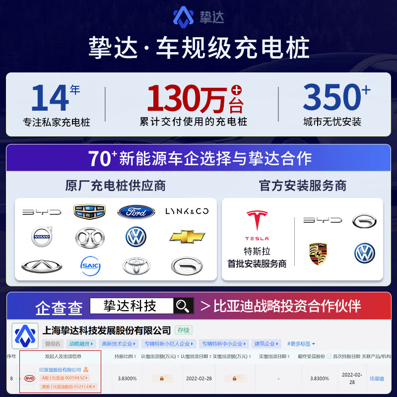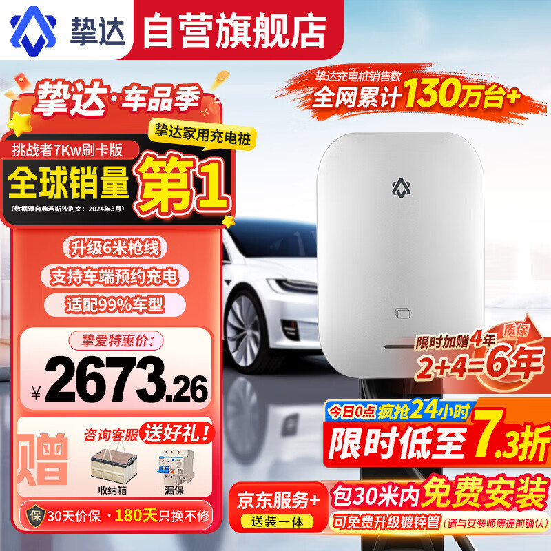 挚达充电桩新能源7kw电动汽车家用充电桩挑战者适配特斯拉问界比亚迪极氪(送装一体)30米安装包价格:3662.00元!