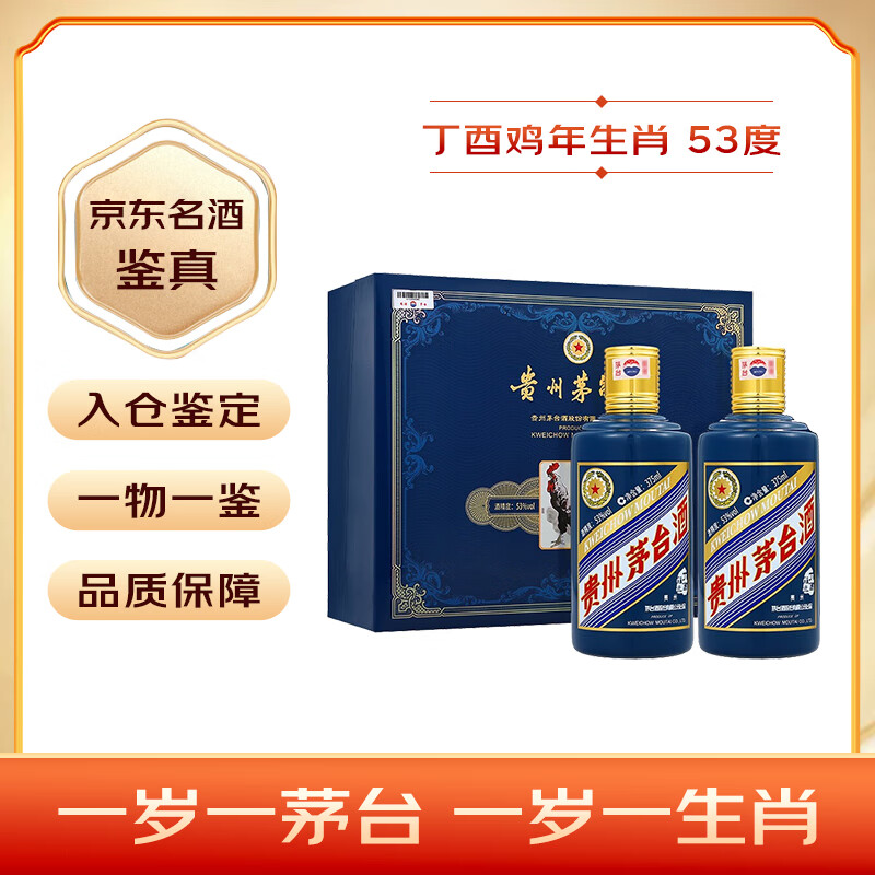 茅台(MOUTAI)生肖 丁酉鸡年 酱香型白酒 53度 375ml*2瓶 礼盒装【名酒鉴真】价格:4999.00元!