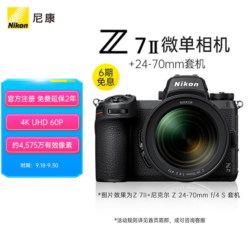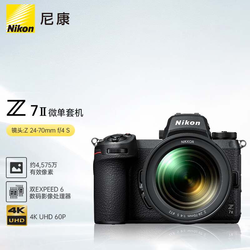 尼康(Nikon)Z 7II(Z7 2/Z72)全画幅微单套机 (24-70mm f/4 微单镜头 约4,575万有效像素)价格:18999.00元!