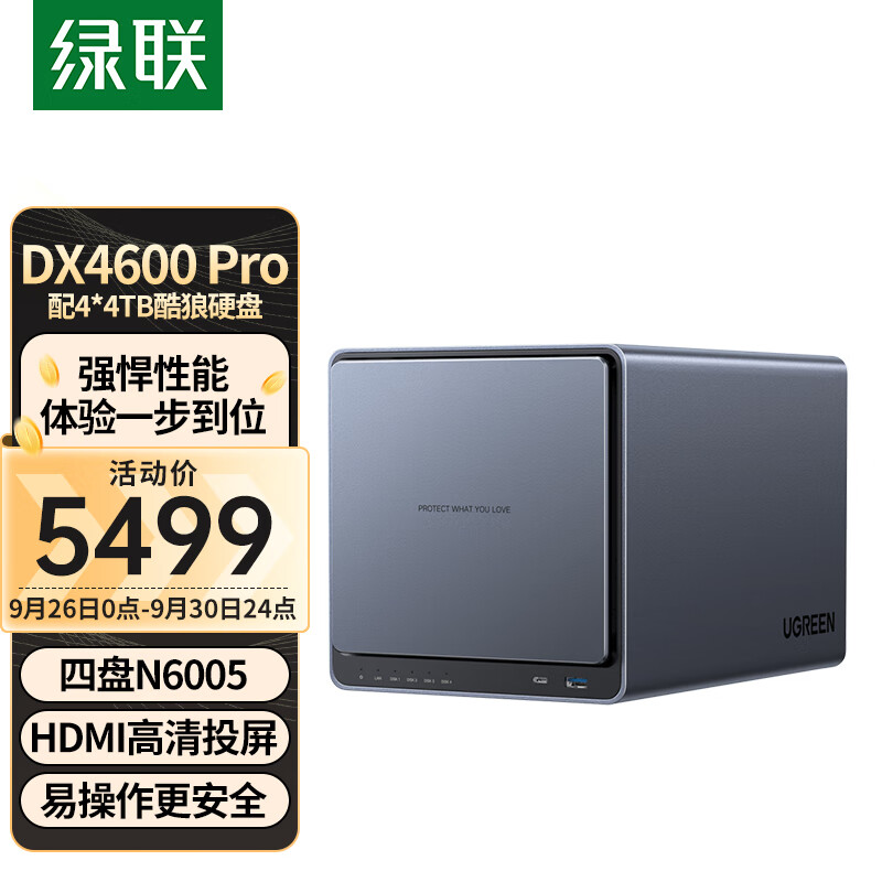 绿联(UGREEN) 私有云DX4600 Pro 16T四盘位Nas网络存储硬盘服务器相册备份文件同步 手机扩容适用iPhone16价格:5899.00元!