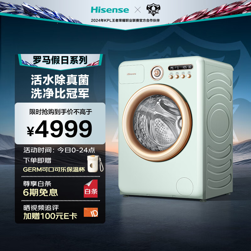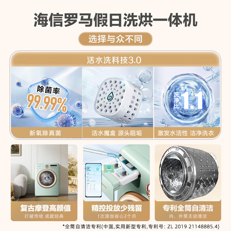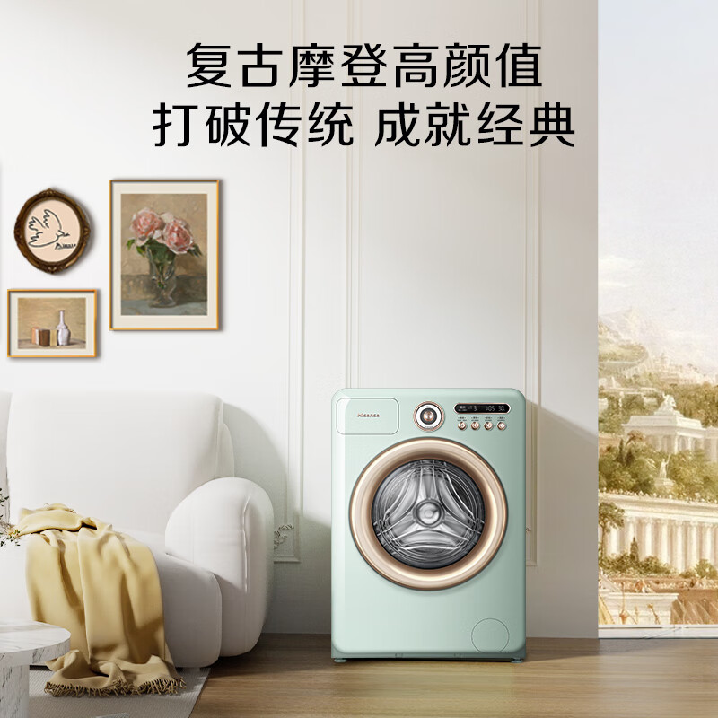 海信罗马假日洗衣机罗马绿 全自动滚筒洗衣机 意式复古10公斤家用大容量洗烘一体超薄活水洗3.0WD100R4价格:4999.00元!