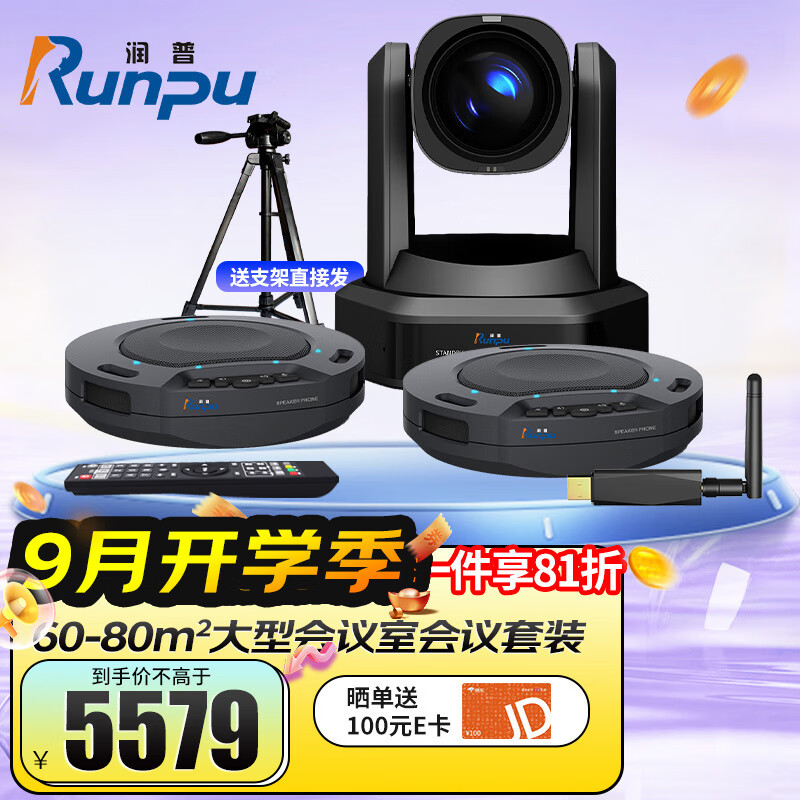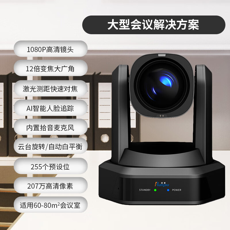 润普Runpu大型视频会议室解决方案适用(12倍AI跟踪会议摄像头多接口摄像机+无线级联全向会议麦)RP-W60价格:6880.00元!