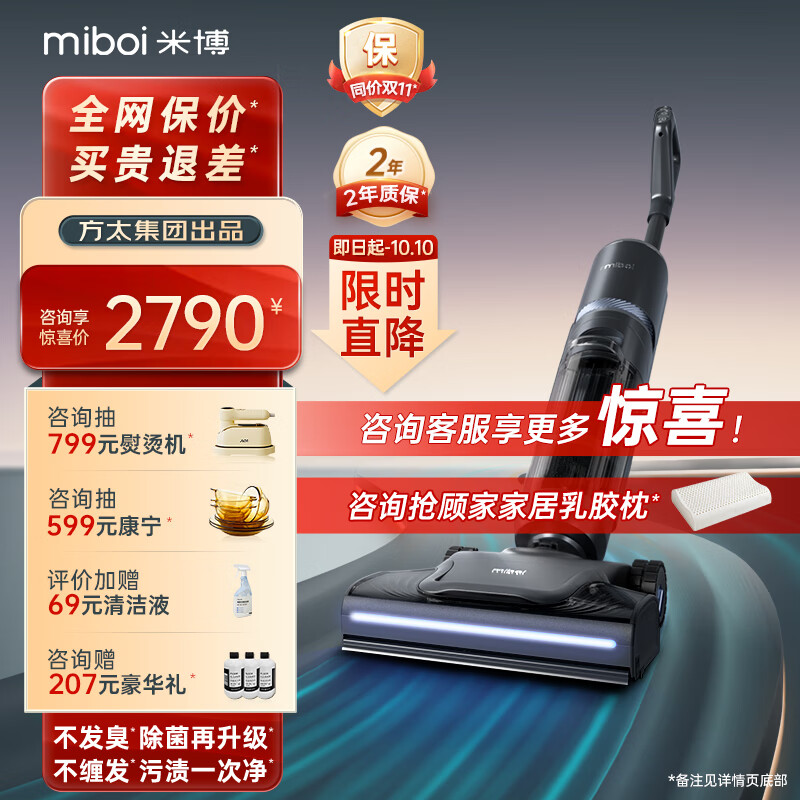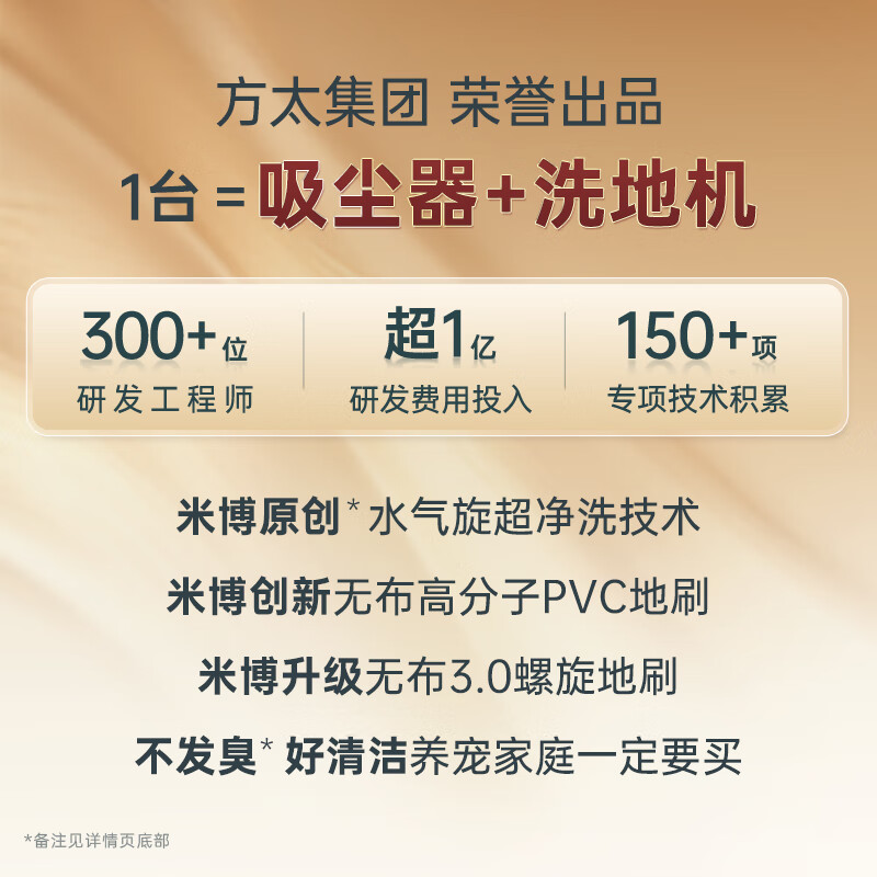 米博无布洗地机V8黑武士家用洗拖吸一体拖地机智能除螨除菌无滚布全自动清洗扫地吸尘方太集团出品价格:3490.00元!