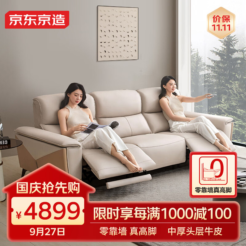 京东京造零靠墙格度2.0真皮电动沙发 头层牛皮中小户型米白色2.7m双电动价格:5399.00元!