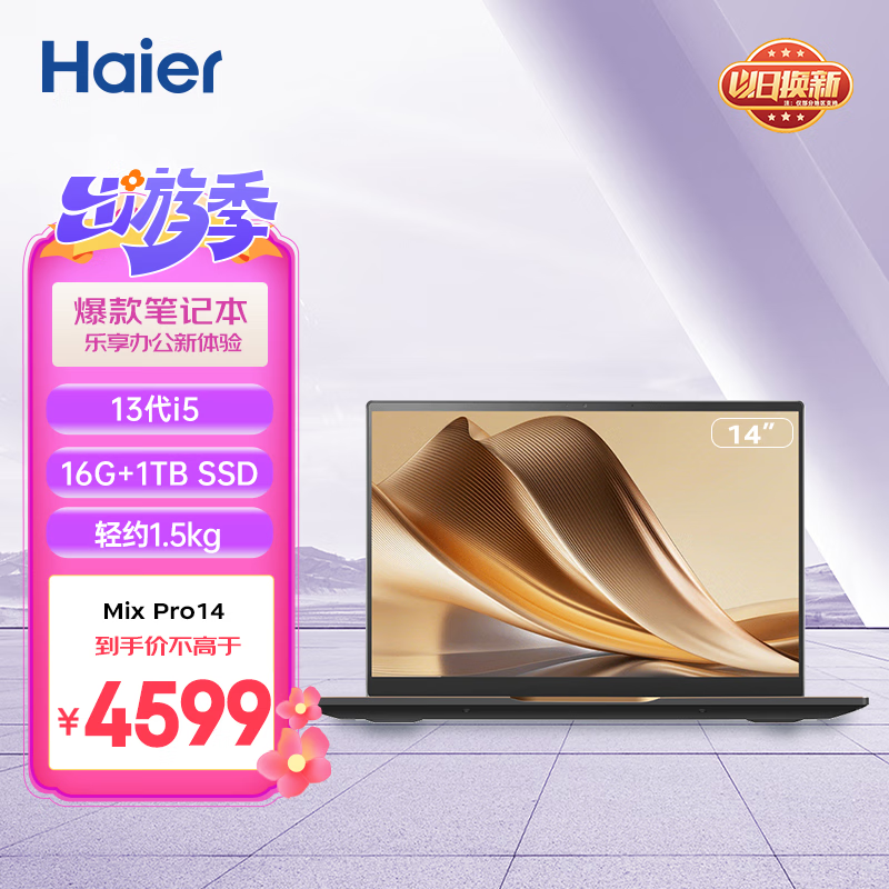 海尔(Haier)Mix Pro14 高刷轻薄本学生办公笔记本电脑 (13代i5 16G 1TB SSD Win11 16:10 2.8K高分屏 )价格:4507.02元!