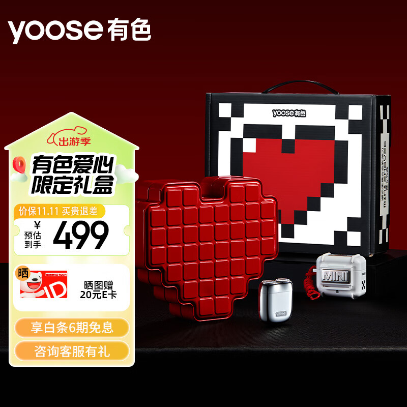 有色(yoose)电动剃须刀便携款合金刮胡刀男士旋转式 生日礼物中秋节送男友老公胡须刀 MINI2.0 爱心礼盒价格:699.00元!