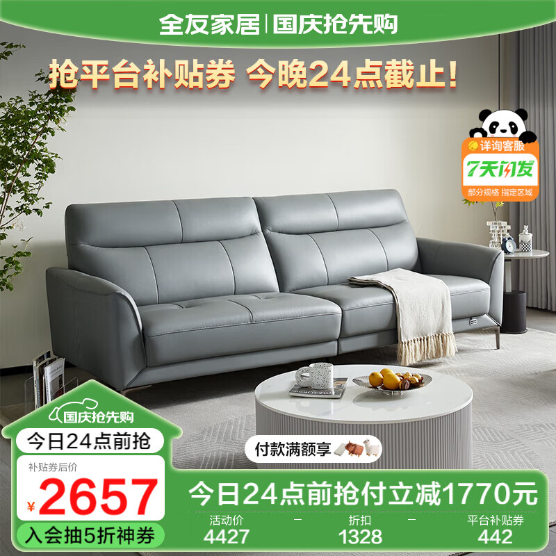 全友家居 真皮沙发 现代简约小户型双人轻奢风直排皮艺沙发客厅102710价格:4427.14元!
