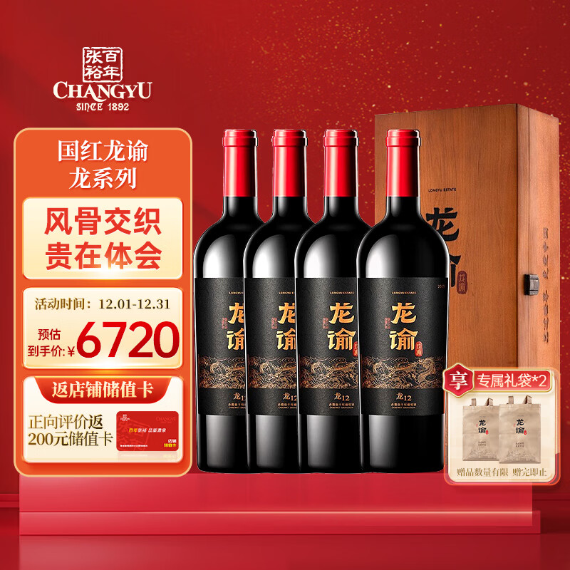 龙谕酒庄龙12赤霞珠干红葡萄酒750ml*4瓶整箱装国产红酒价格:6720.00元!