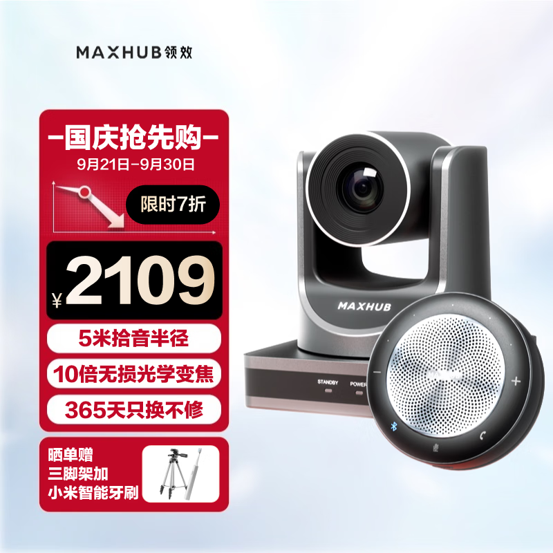 MAXHUB视频会议设备全套系统套装10倍光学变焦高清云台摄像头+全向麦克风5米拾音 会议室解决方案20-40㎡价格:2109.00元!