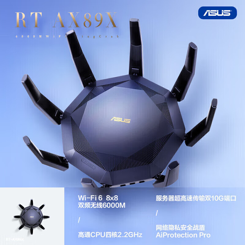 华硕(ASUS)RT-AX89X帝王蟹电竞游戏路由器黑神话悟空下载利器/双万兆口/全千兆无线WiFi6路由器/Ai路由器价格:2199.00元!