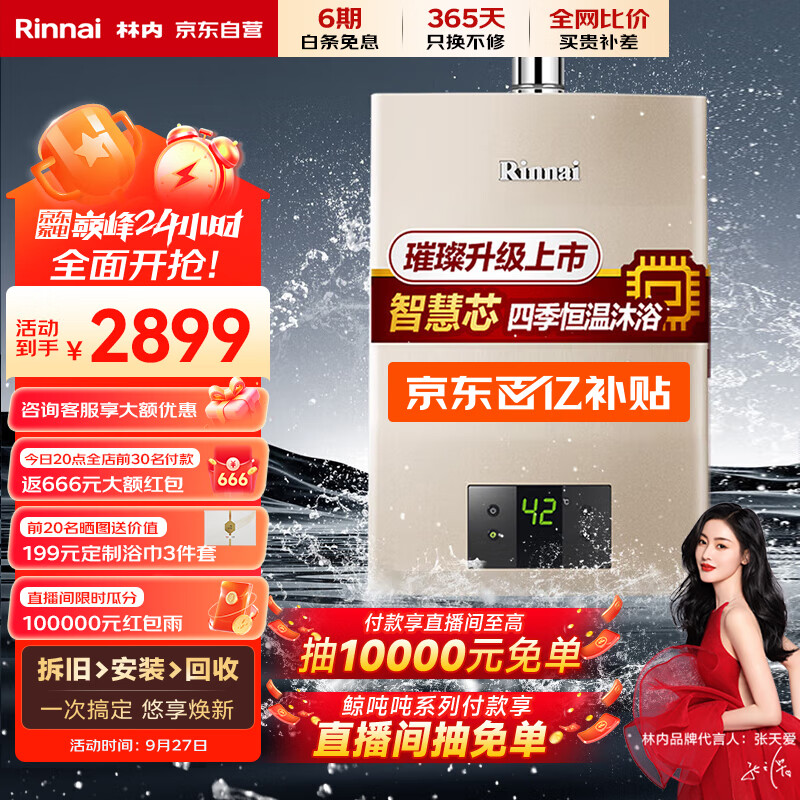 林内(Rinnai)璀璨系列16升燃气热水器 升级智慧芯 水气双调 天然气12T RUS-16QC05(JSQ31-C05)价格:2899.00元!