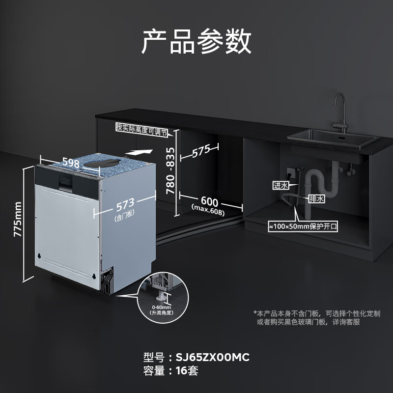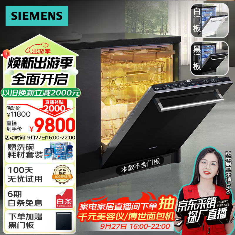 西门子全能舱洗碗机嵌入式16套晶蕾烘干除菌存储 晶蕾96小时储存 触控式SJ65ZX00MC(带黑玻璃门板)价格:11800.00元!