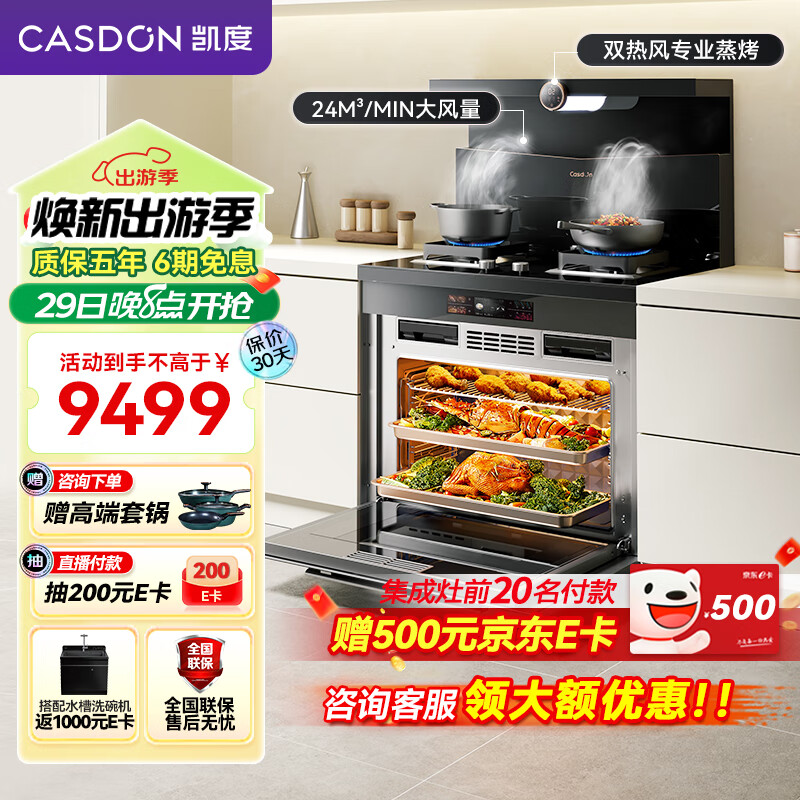 凯度(CASDON)集成灶蒸烤一体式集成灶一体灶蒸烤箱燃气灶家用抽油烟机 24风量 80L双热风 JJZT-B2S8-T2E 天然气价格:10499.00元!