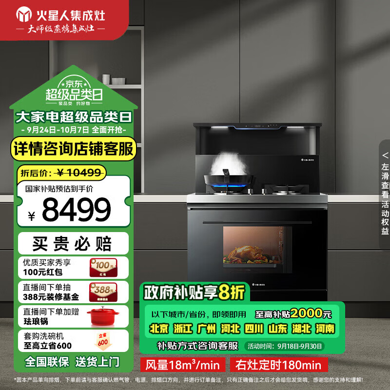火星人集成灶 T30BC 小刘海 集成灶蒸烤箱 集成灶一体式 油烟机 燃气灶 天然气价格:10599.00元!