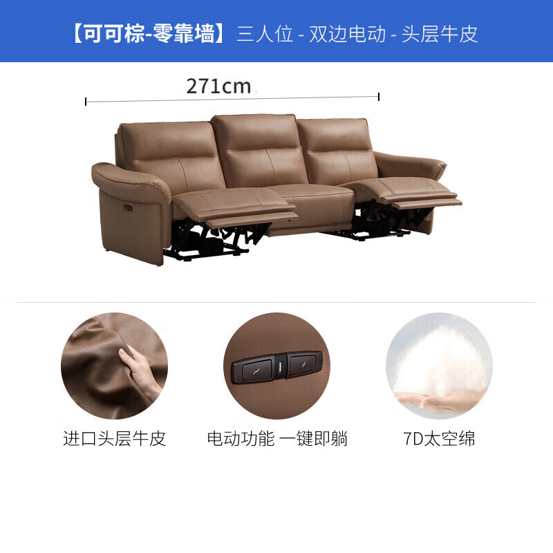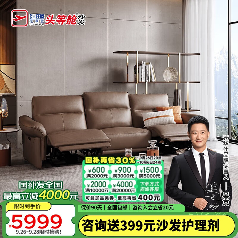 芝华仕(CHEERS)头等舱贵族皮沙发零靠墙意式简约复古电动功能家具50835棕三价格:5999.00元!