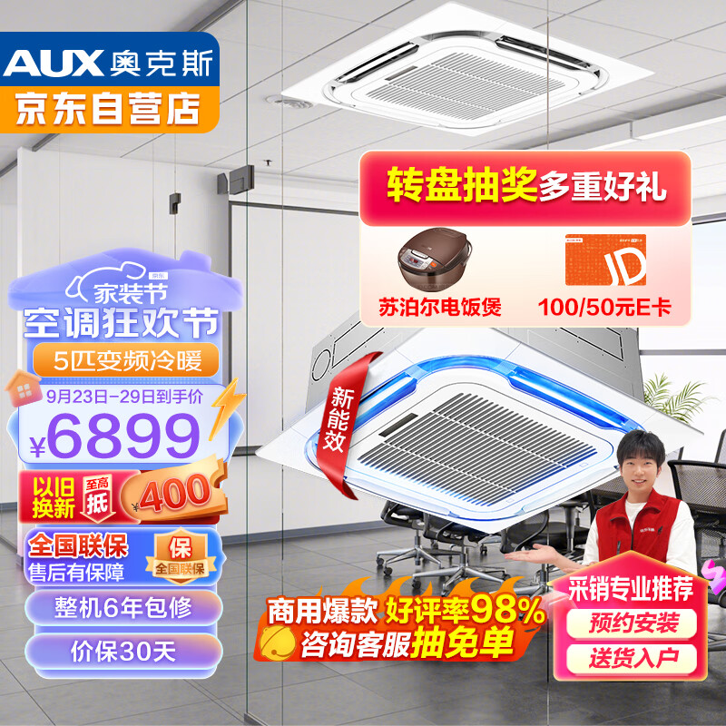奥克斯(AUX)中央空调 天花机5匹变频冷暖吸顶空调嵌入式吊顶空调商用天井机380V KFR120QW/BPR3YDS(B3)-G 厂直价格:6899.00元!