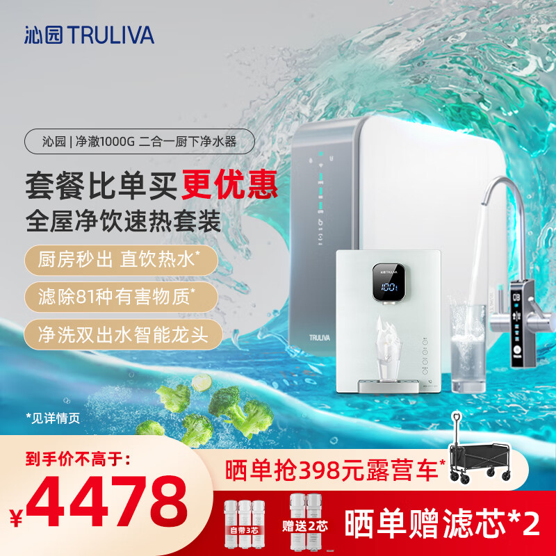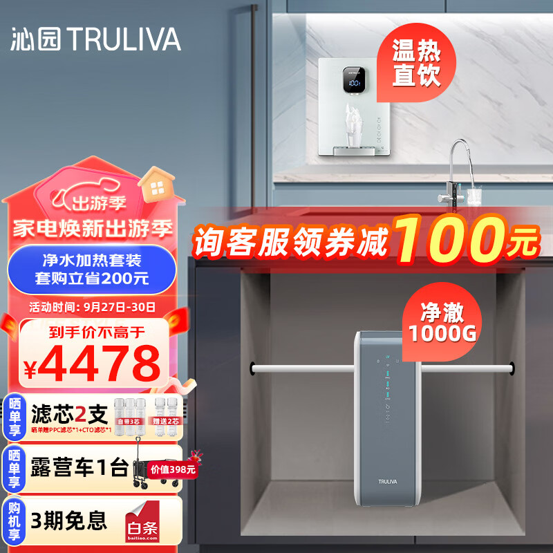 沁园(TRULIVA)净澈双出水1000G二件加热套装 净水器UR-SX51070+加热管线机LNW580-5W价格:4478.00元!