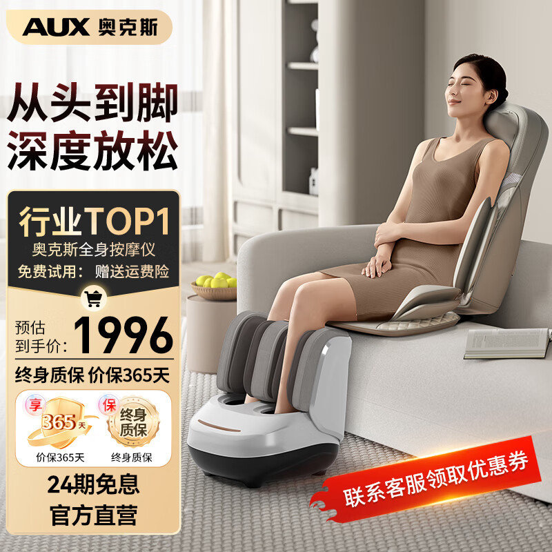 奥克斯(AUX)按摩垫全身腰背颈椎按摩仪按摩靠垫器腰部肩部车家两用按摩椅垫豪华高端生日礼物实用送爸爸妈妈 豪华米咖色【升级腿部+脚底SPA】价格:2996.00元!