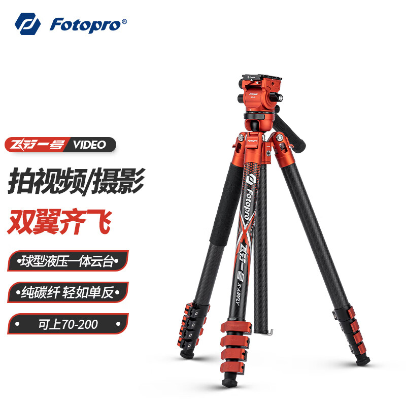富图宝(Fotopro)飞行一号 VIDEO 液压球形一体云台相机微单摄影摄像无中轴扳扣碳纤维三脚架 火焰橙 含手机夹价格:1499.00元!