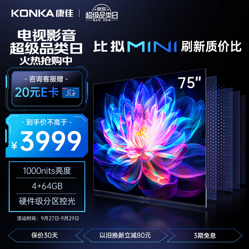 康佳电视 75G7 PRO 75英寸 比拟Mini LED 144Hz游戏电视 4+64GB 4K超清屏智能平板电视机以旧换新价格:3499.00元!