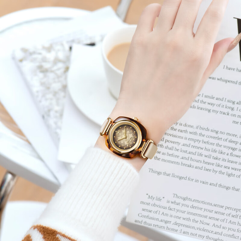 1、女儿喜欢的样式和品牌,适合手细的女生,非常漂亮,跟我女儿气质很搭,走时目前是准确的