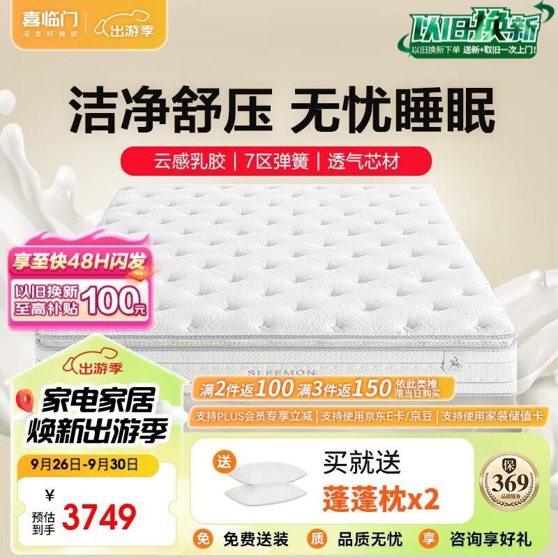 喜临门床垫 2cm高纯乳胶7区分区弹簧透气芯材床垫 白骑士pro 2x2.2米价格:4199.00元!