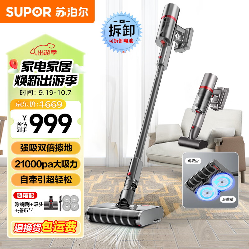 苏泊尔(SUPOR )手持无线吸尘器家用洗地机吸拖一体全自动大吸力拖地机电动拖把宠物家庭适用EVS-C12价格:999.00元!