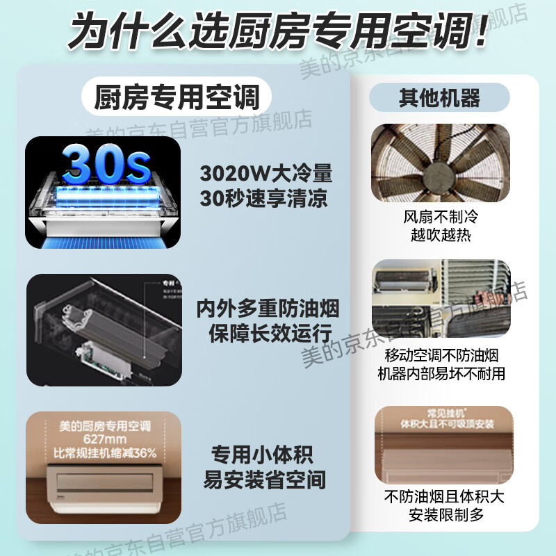 2、厨房空调,厨房空间大,厨房用的都是这个,用的放心。一直信任美的品牌,很好很满意。