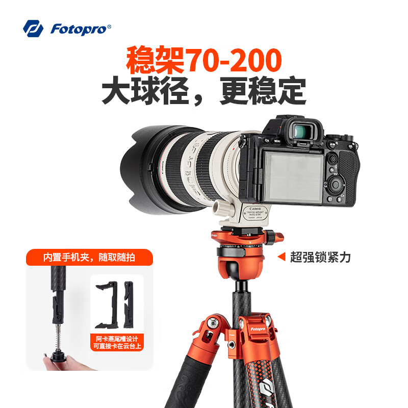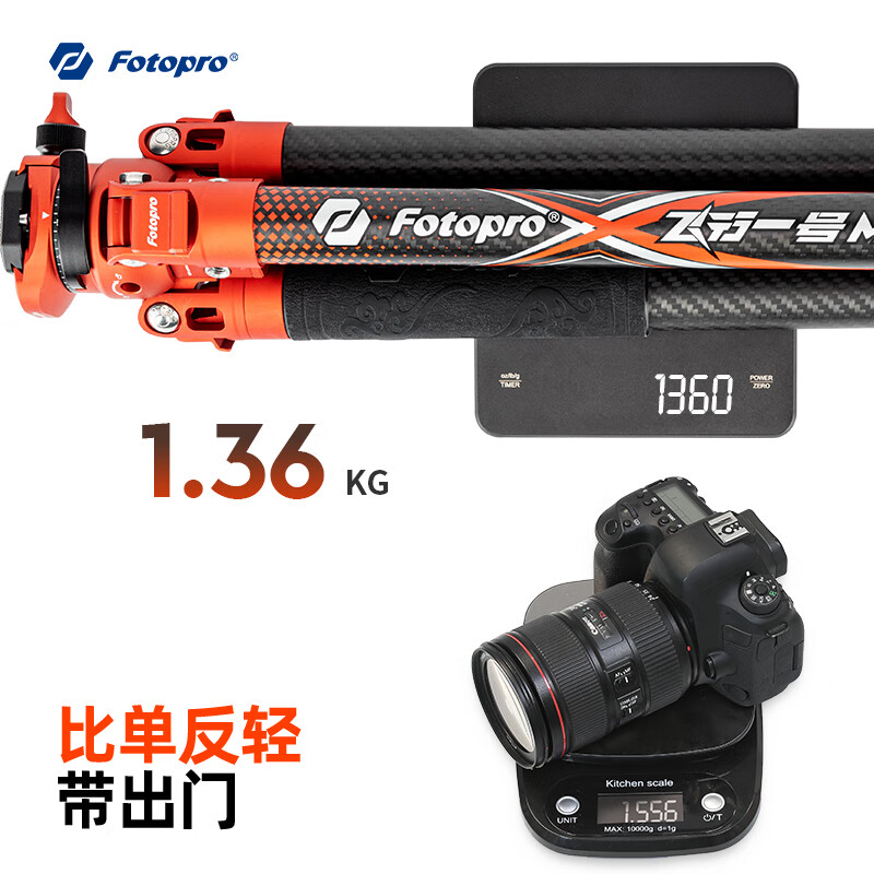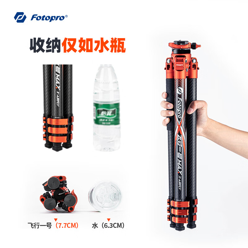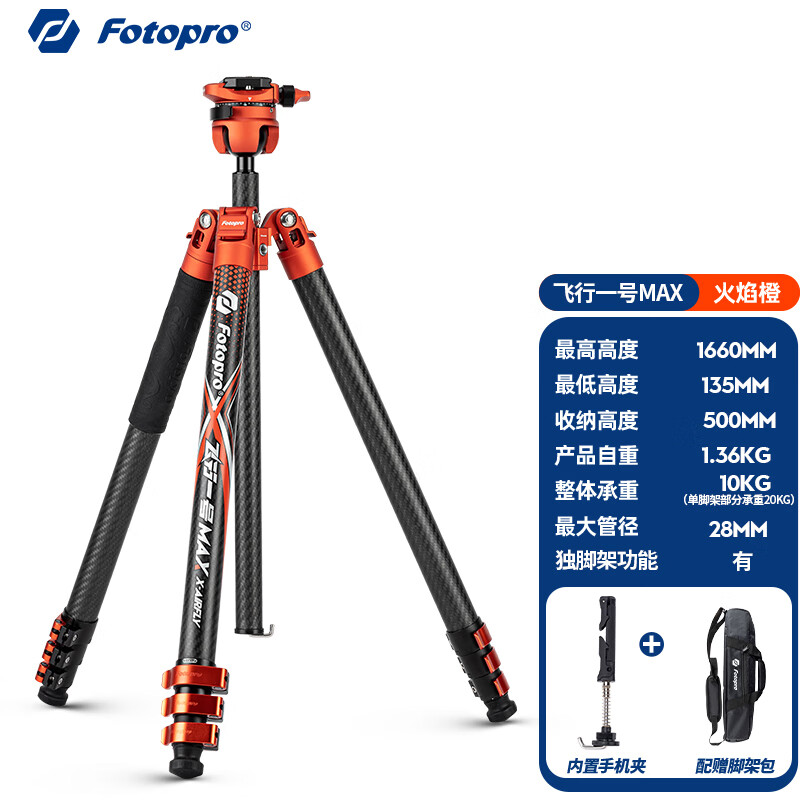 富图宝(Fotopro)飞行一号Max 碳纤维扳扣设计大管径专业相机微单摄影摄像三脚架 火焰橙价格:1375.00元!