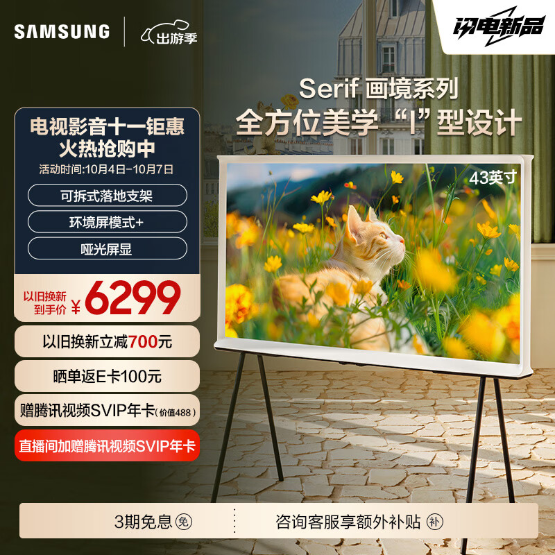 三星(SAMSUNG)43LS01D 43英寸 Serif画境艺术电视 超薄4K哑光屏显 QLED量子点 QA43LS01DAJXXZ 咨询客服享补贴价格:6999.00元!