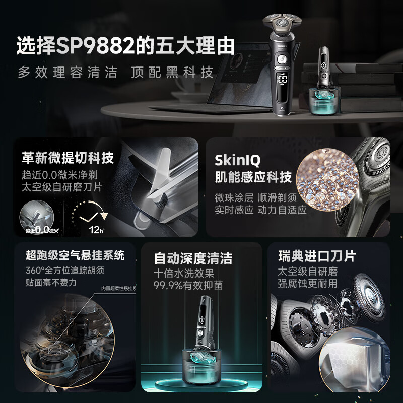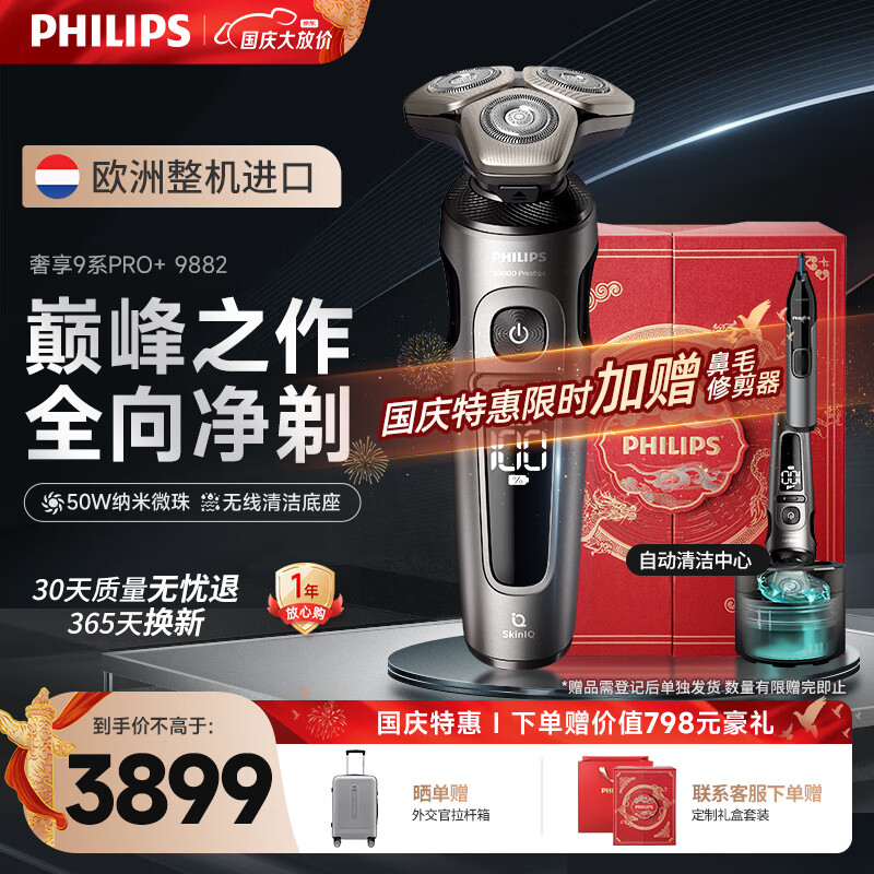 飞利浦(PHILIPS)剃须刀电动奢享9系剃胡刀 【整机荷兰进口】生日礼物纪念日礼物 定制礼盒送男友送长辈 SP9882价格:3999.00元!