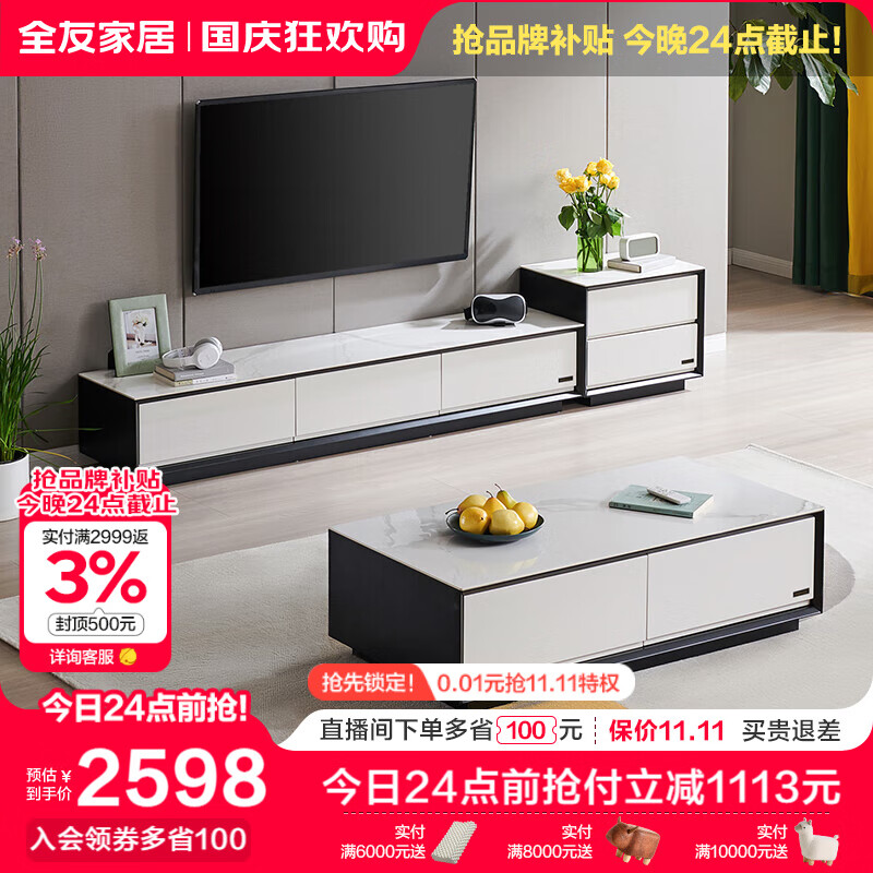 全友家居 岩板茶几电视柜组合现代简约客厅电视柜落地储物家具DW1055价格:3711.43元!