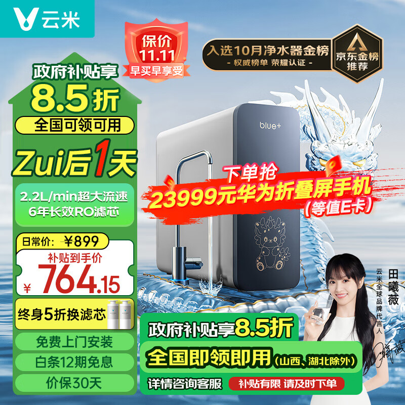 云米(VIOMI)净水器小京龙800G家用净水器ro反渗透纯水机厨下式母婴直饮机大通量自来水过滤器净水机价格:899.00元!