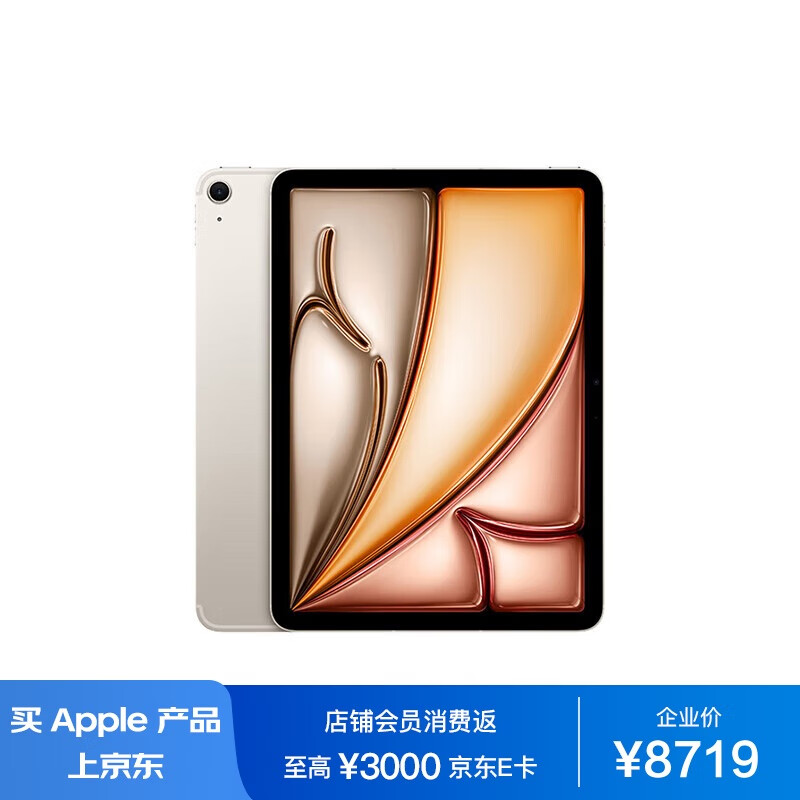 Apple iPad Air 11 英寸 M2芯片 2024年新款平板电脑1TB WLAN版/MUWT3CH/A 星光色*企业专享价格:8999.00元!