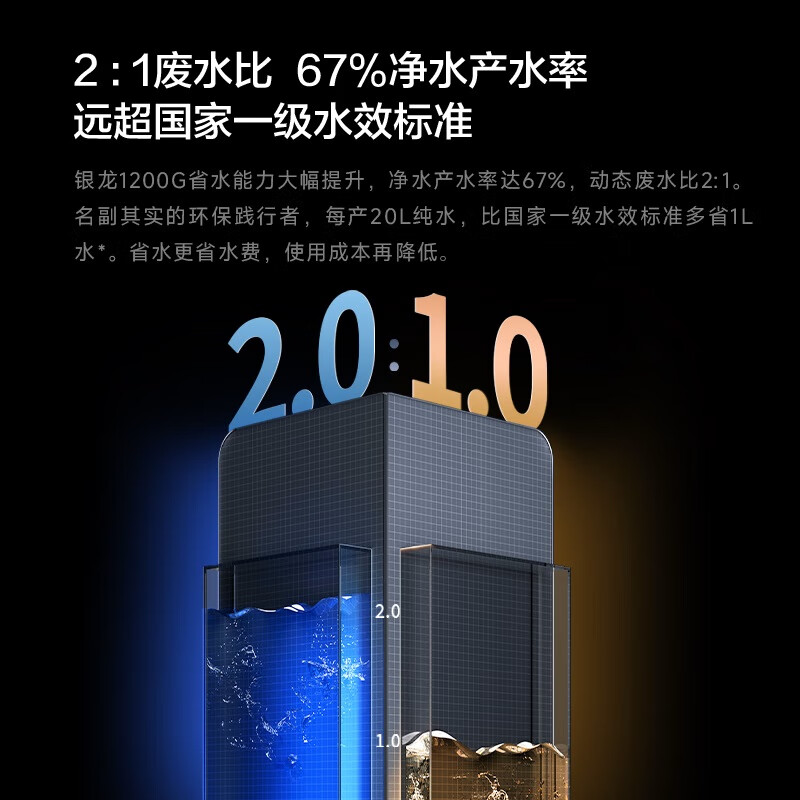 易开得银龙净水器家用厨房1000G大通量6年RO反渗透厨下式净水机自来水饮水直饮一体水龙头过滤器2.6L/分价格:1999.00元!