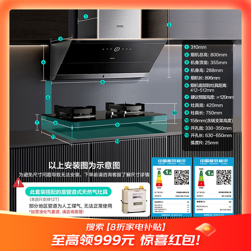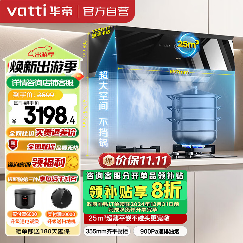 华帝(VATTI)官方抽油烟机家用超薄变频大吸力顶侧一体新侧吸25风量自动清洗烟机燃气灶具烟灶套装i111A2天然气价格:3899.00元!