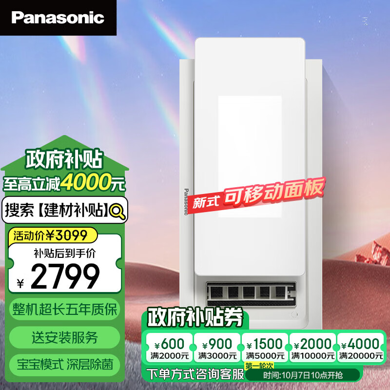 1、很喜欢松下这个品牌,工业设计出众,做工质量过硬,使用起来也很人性化,售后也让人放心。本地没有实体店,所以很多商品只能网购,出于对京东的信任,退换货可以无忧,操作又方便就果断下单购买心仪的商品!松下的浴霸口碑一直很好,这次趁着活动就出手买了两套。物流很快,包装也结实,收到浴霸之后赶紧开箱查看,商品完好无损,还专门赠送了另外一个300*300的平板灯和一想安装配件,赠送的东西也是质量非常好,总之是一次满意的购物。