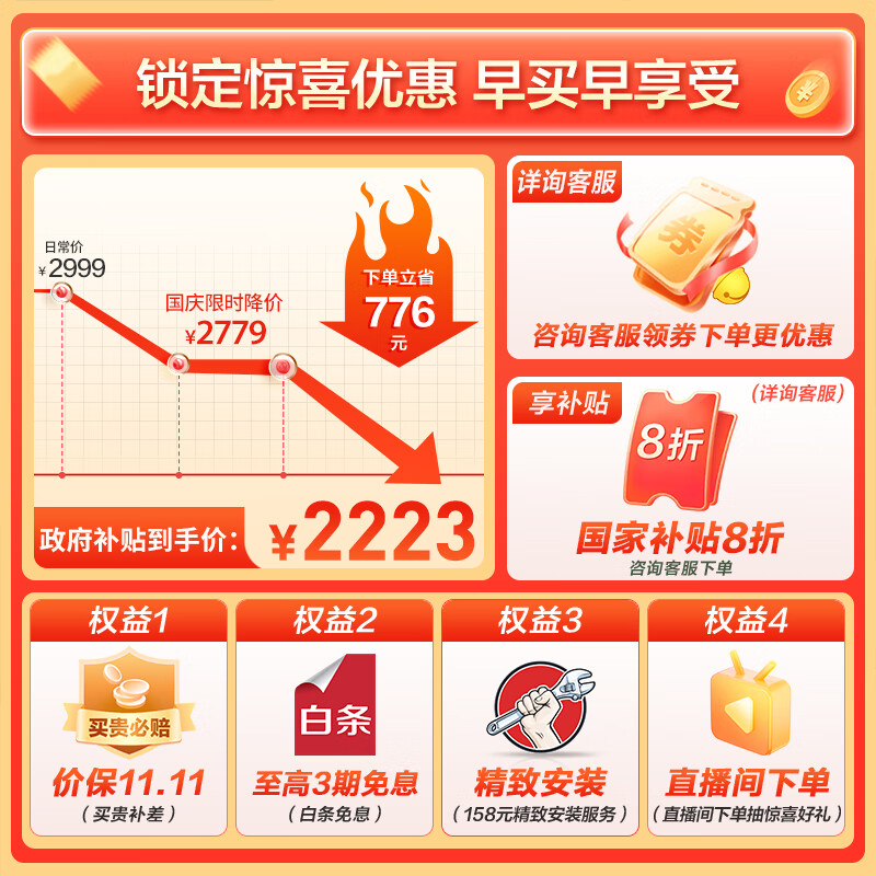 2、速度快,安装也方便,师傅很给力。有一次购买海尔产品。