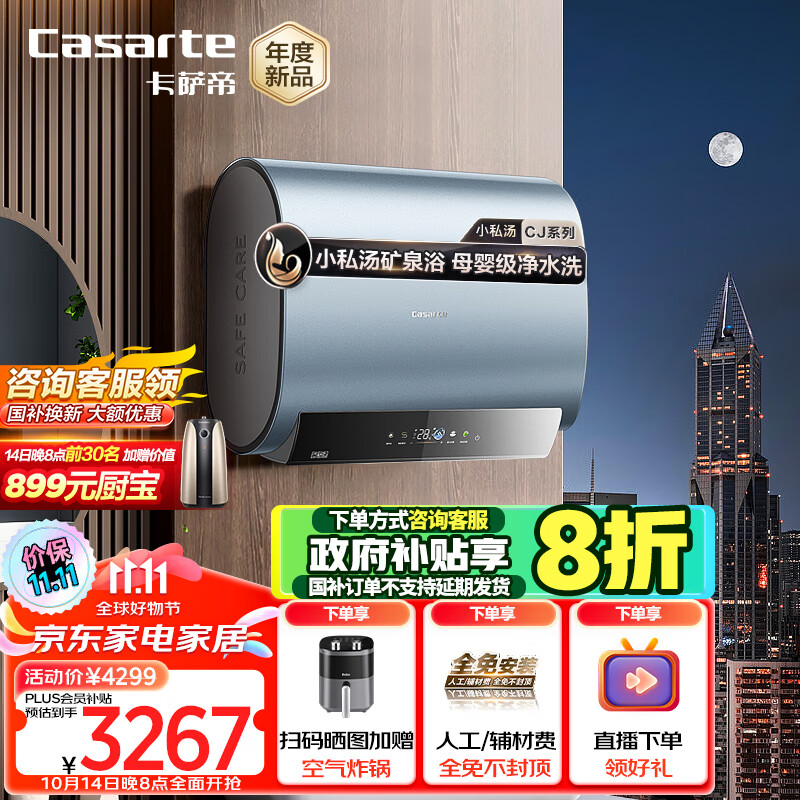 卡萨帝(Casarte)星悦电热水器CJ5PRO国补速热60升储水式家用双胆扁桶型富锶一级能效CEC6003HD-CJ5PROKAKU1价格:4499.00元!