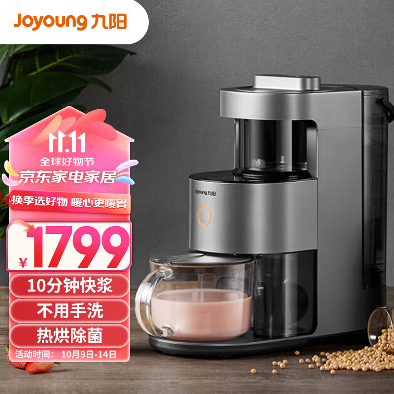九阳免手洗破壁机 低噪音不用手洗高端多功能预约热烘除菌榨汁机轻音 豆浆机 Y966价格:1799.00元!